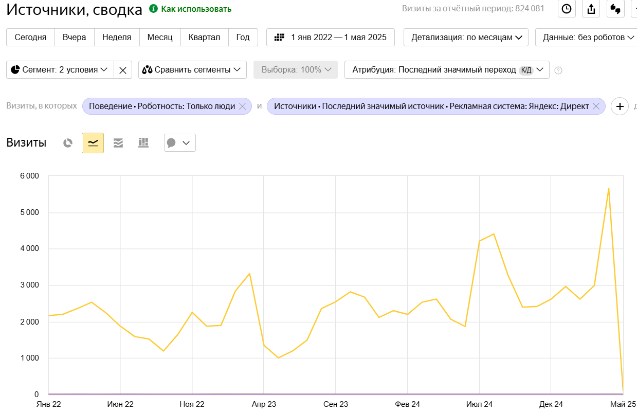 - Рост за счет SEO и контекстной рекламы.